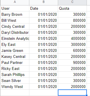So.. let’s start with the first step. You have a csv file with your rep name, date and quota.